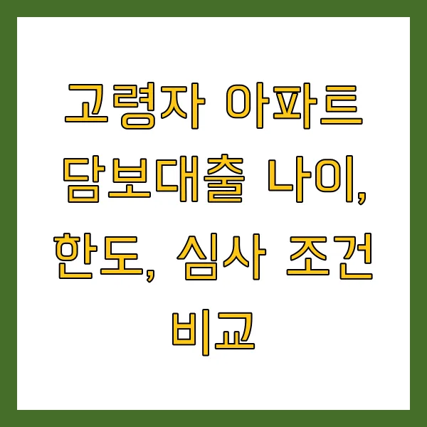 고령자 아파트 담보대출은 단순히 금리와 한도만 비교하는 것이 아니라, 각 금융사의 심사 요건과 나이 제한, 추가 대출 가능 여부까지 꼼꼼하게 살펴봐야 합니다.