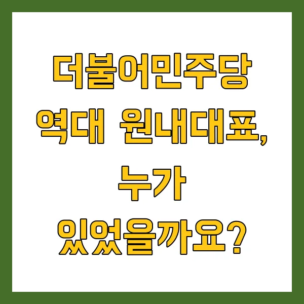 - 전신 정당의 리더들: 과거 원내대표 명단에는 더불어민주당의 전신 정당 리더들도 포함되어 있어요. 이들의 활동을 살펴보면, 현재 더불어민주당의 뿌리를 엿볼 수 있답니다.