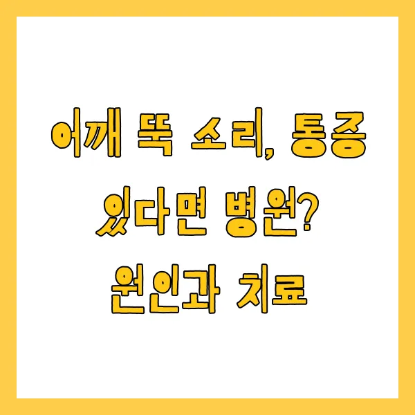 어깨에서 "뚝" 소리가 나고 통증까지 있다면, 많은 분들이 걱정하실 텐데요. 단순한 소리일 수도 있지만, 어쩌면 우리 몸이 보내는 중요한 신호일 수도 있습니다. 어깨는 우리 몸에서 가장 많이 움직이는 관절 중 하나이기 때문에, 다양한 원인으로 문제가 발생할 수 있어요. 오늘은 어깨에서 나는 "뚝" 소리의 원인과, 어떤 경우에 병원에 가야 하는지 자세히 알아보겠습니다. 어깨 건강, 미리미리 챙겨서 활기찬 일상을 유지해보세요!